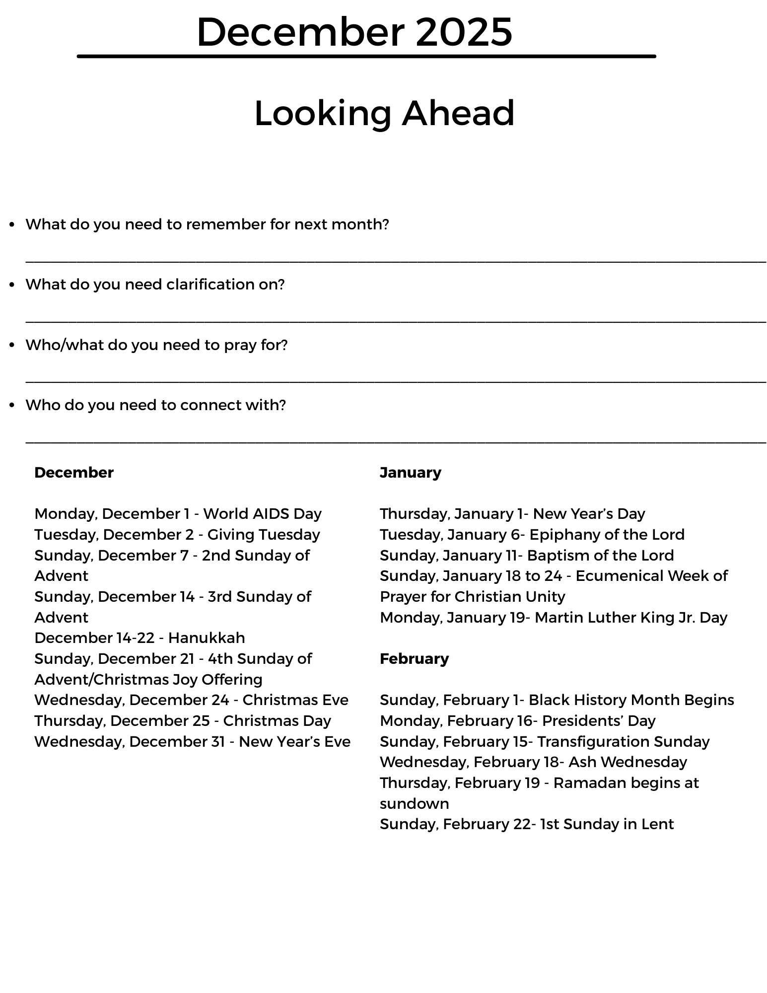 Sacred Calls recommends printing double-sided and putting in a 3-ring binder. This leaves space for you to add your own pages specific to your context.