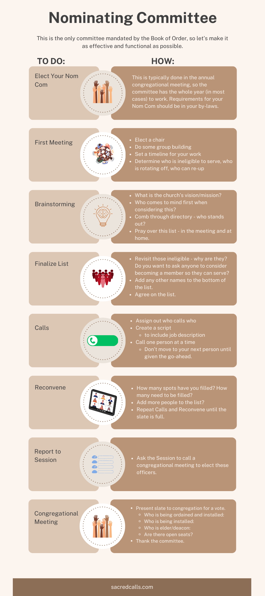 Nominating Committee can be a super daunting task for a brand new pastor. This infographic and accompanying guide are here to help!